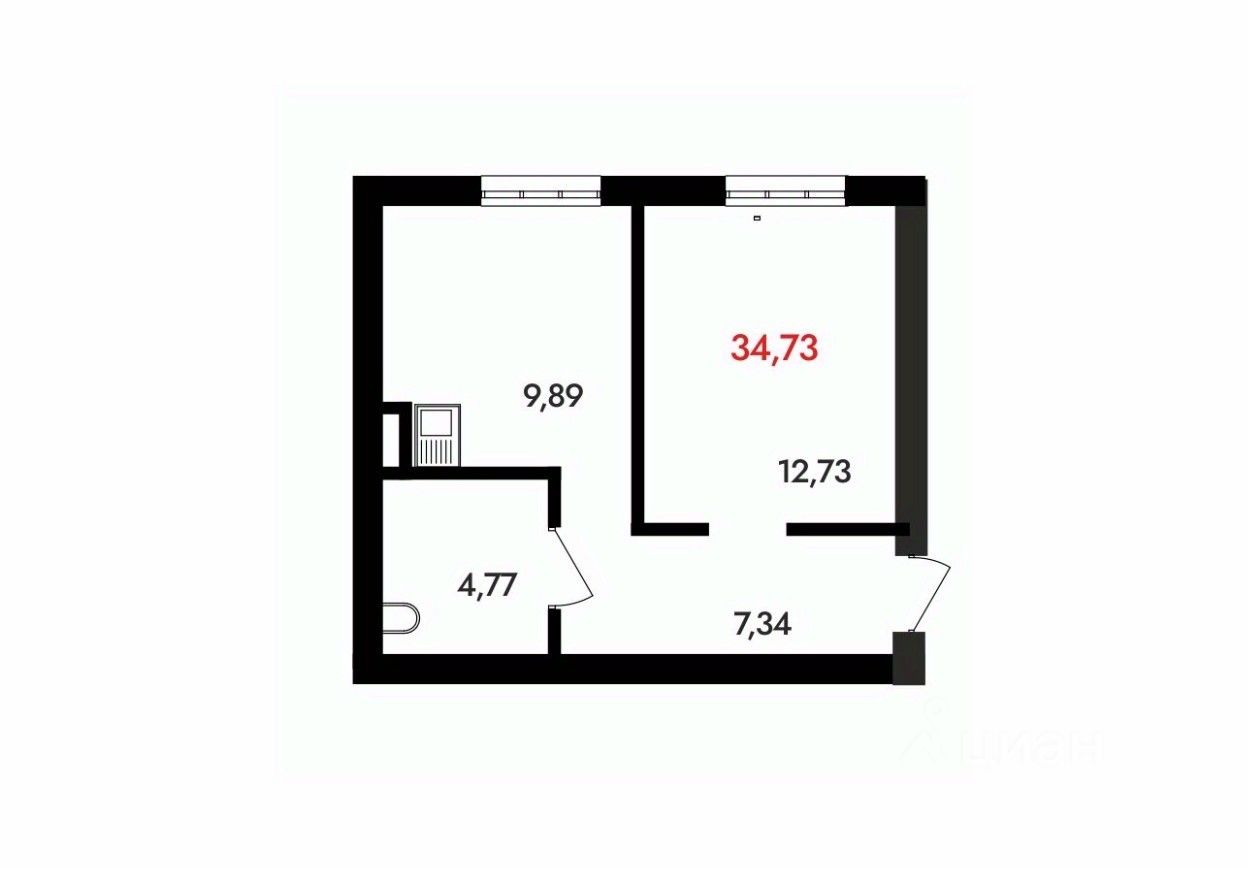 Общая площадь34,73 м²