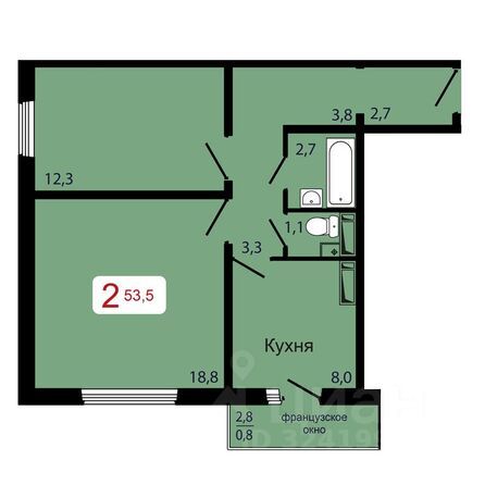 53,5 м²