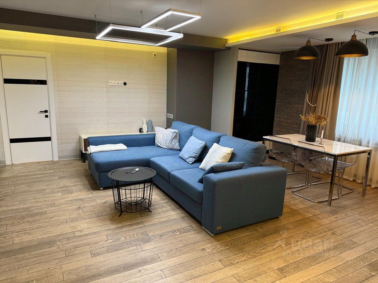 * Просторная гостиная, объединённая с кухней — идеальное пространство для отдыха и приёма гостей.