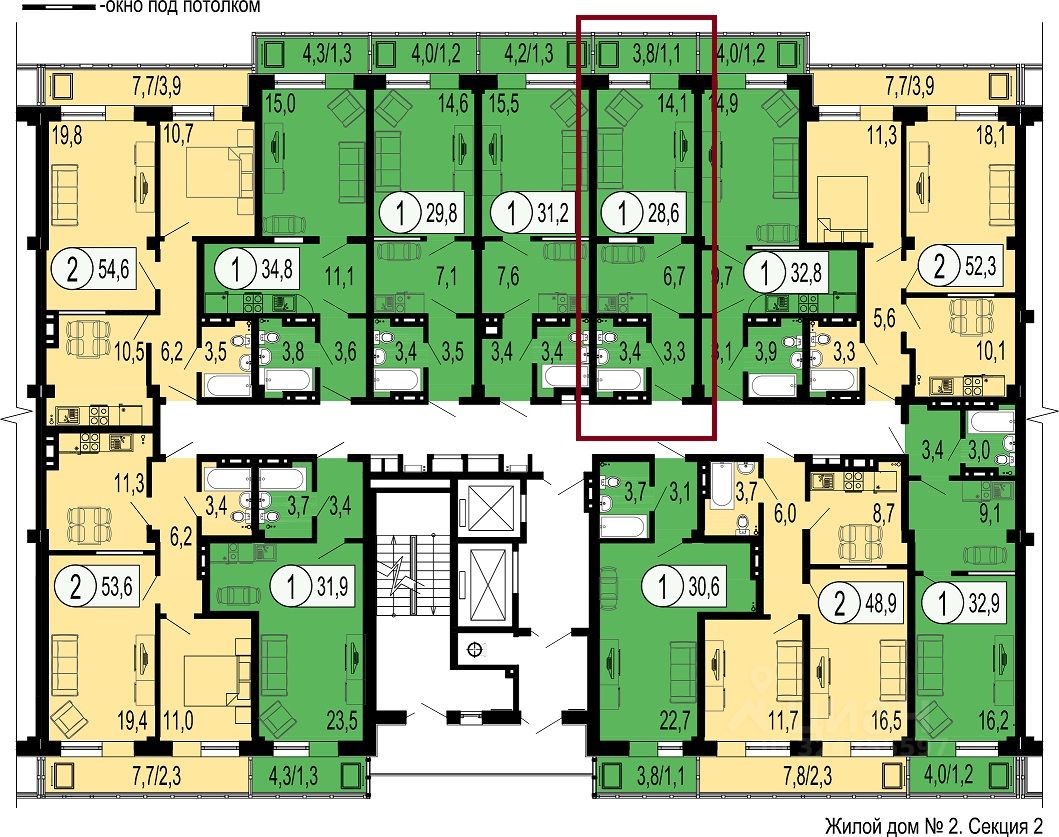 + Закрытый от автомобилей внутренний двор. Входы в подъезды дома выполнены с обеих сторон, на уровне отметки благоустройства.