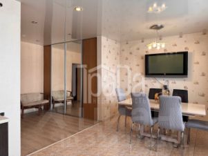 Предлагается к продаже четырёхкомнатная квартира в Железнодорожном районе. Расположена на 6-м этаже 10-этажного кирпичного дома. Просторная и тёплая, окна выходят на две стороны, имеются две большие лоджии. Натяжные потолки, пол — линолеум, все радиаторы новые, два санузла облицованы плиткой, на кухне — плитка на полу. Квартира свободна, остаются мебель и бытовая техника.