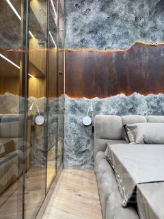 Использованы только высококачественные материалы и зарекомендовавшие себя бренды: премиальная бытовая техника Asko, элитная сантехника Boheme, освещение из Италии и др.