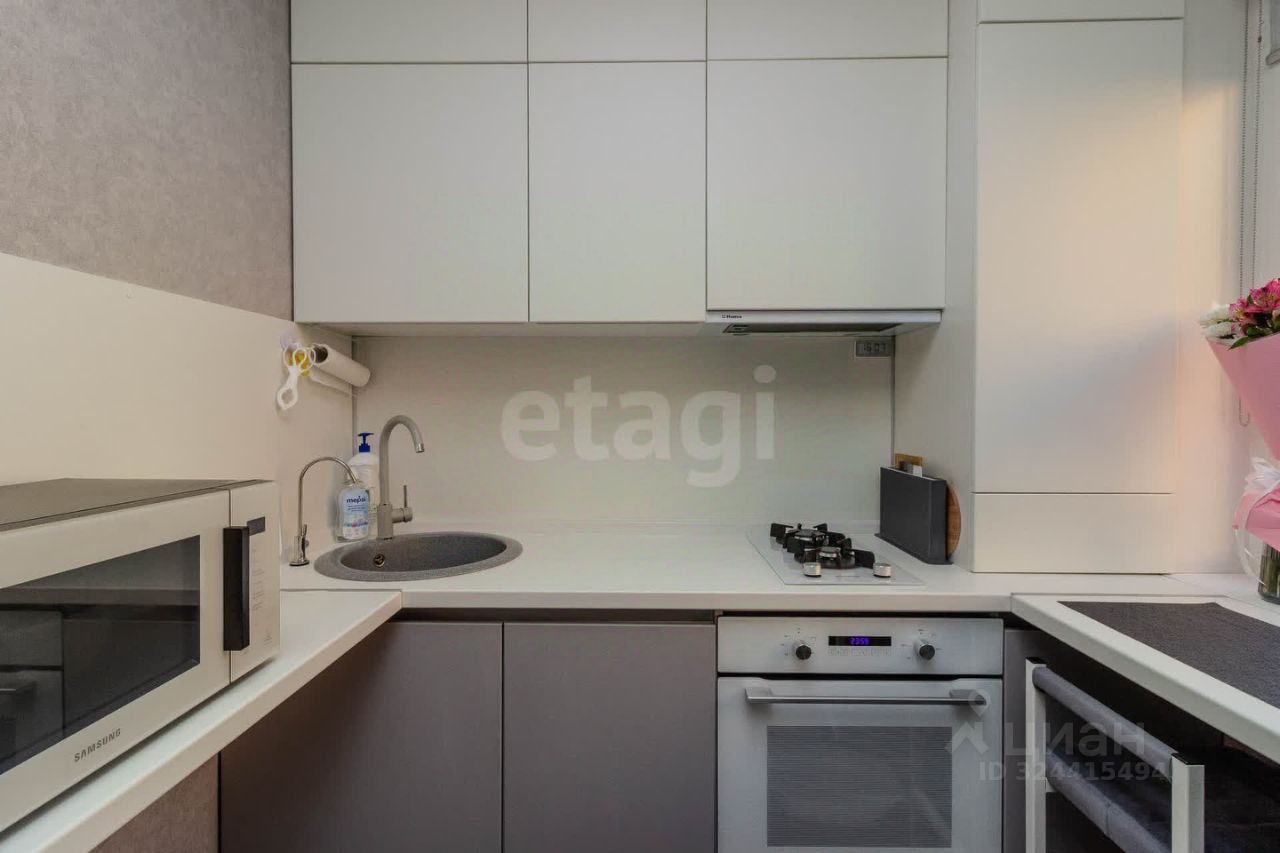 B квaртире оcтаетcя: два вмeстительных встроенных шкафа - в прихожей и в спальне, кухня изготовлена на заказ, со всей встроенной техникой: варочная поверхность, духовой шкаф, посудомоечная машина.