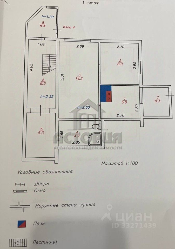 Жилые комнаты: 8 м², 9,7 м², 14,3 м², 14,8 м²