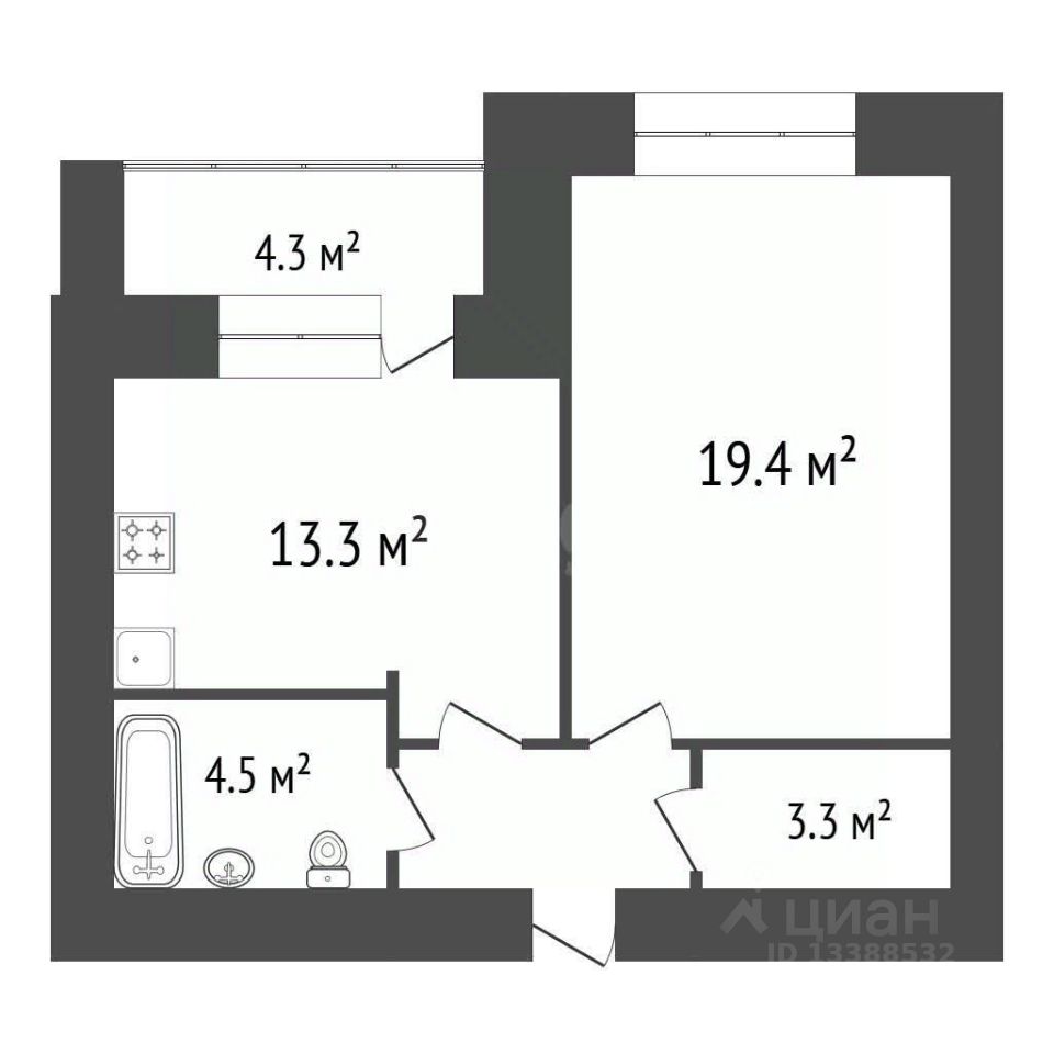 • Просторная кухня-гостиная 13,3 м²