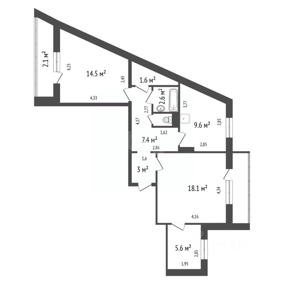 Санузел раздельный.