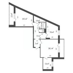Площадь комнат составляет (18,1; 14,5; и маленькая комната с окном 5,6), данную комнату можно использовать по вашему желанию (в качестве игровой, кабинета, мини зала для спорта).
