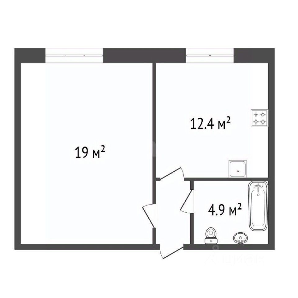 Продуманная планировка. Просторные комната (19 кв.м.) и кухня (12,4 кв.м.). Большой санузел 4,9 кв.м. В коридоре предусмотрено место под шкаф. На этаже также имеется своя кладовая для хранения вещей, выход на балкон.