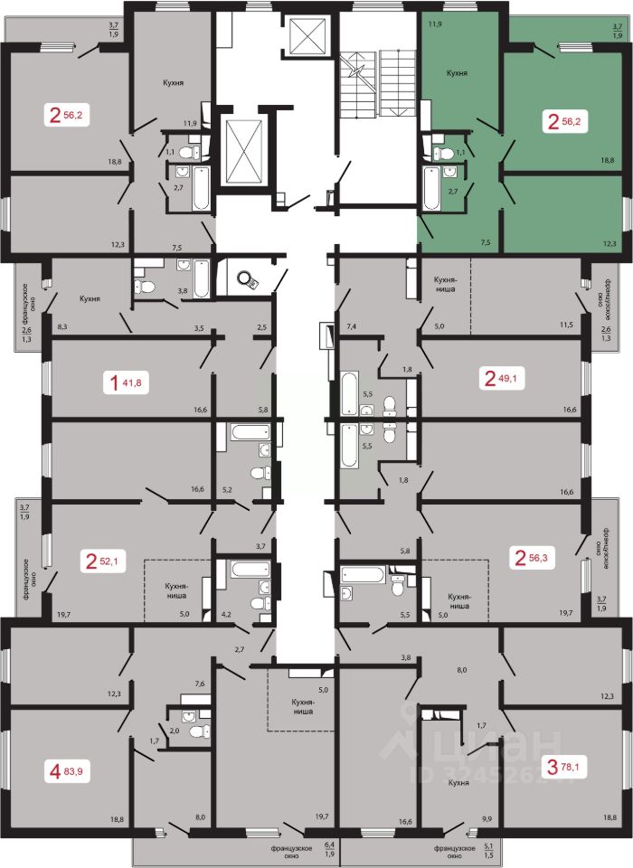 Продаётся 2-комнатная квартира в строящемся доме (Дом 3 строение 2), срок сдачи: II-кв. 2026, общей площадью 56.2 кв.м., на 7 этаже.