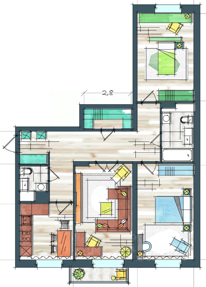 Продаётся 3-комнатная квартира в сданном доме (Петра Ломако, 1 (Дом 22, 2 этап)), срок сдачи: I-кв. 2022, общей площадью 98 кв.м., на 4 этаже. Внимание к деталям - один из главных принципов возведения микрорайона "Преображенский". Отдельные нюансы и их совокупность создают "умное" пространство и принципиально новый для города стиль жизни. В его основе - актуальная сегодня концепция смарт-сити. Однако "умный город" в прочтении "Монолитхолдинга" - это только и не столько про техническое оснащение района, оно в "Преображенском", безусловно, будет присутствовать. В первую очередь "смарт" - это пространство, позволяющее человеку самореализоваться в городской среде и сделать это по максимуму. "Для нас "умный город" - это новый образ жизни. Это среда, где все - от планировки района до выбора систем вентиляции - нацелено на удобство жителей. Ставим перед собой и сверхзадачу - предвосхитить потребности. "Преображенский" был спроектирован при активном участии известного японского архитектурного бюро Nikken Sekkei. Основная застройка на уровне 6-8-этажных домов, закрытые дворы и подземный паркинг, площадки для занятий спортом и отдыха, озеленение, широкий пешеходный проспект как "сердце" района. Однако японцы привнесли в "Преображенский" не только архитектурный подход мирового уровня. Главное - это особая философия проекта, в центре которой человек и его семья. Принцип "все для людей": максимальная продуманность, безопасность, удобство, внимание к деталям - именно из них и складывается жизнь. К вопросу безопасности в микрорайоне "Преображенский" подходим комплексно. В основе - принцип замкнутого контура дворов и запрет на парковку в них. На практике это означает то, о чем сегодня многие красноярцы только мечтают - можно отпустить ребенка во двор и не беспокоиться за его жизнь. Для размещения автомобилей в каждом доме "Преображенского" будет оборудован подземный паркинг. Для безопасности автомобилей гостей "Преображенского" на въезде в микрорайон будет возведен большой гостевой паркинг, оборудованный системой диспетчеризации. Среди других нюансов, формирующих безопасную среду - система оповещения о чрезвычайных ситуациях и информационные и тревожные панели, расположенные на территории микрорайона. На всех входах в "Преображенский" установят видеодомофоны. Системы видеонаблюдения будут расположены на улицах, внутри дворов и подъездов, а доступ к видеозаписям жители смогут получить on-line через личный кабинет.