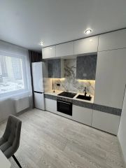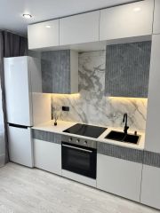В квартире установлена НОВАЯ мебель, кухонный гарнитур, новая техника (холодильник, стиральная машина, встроенная варочная панель, встроенный духовой шкаф).