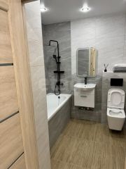 Сан.узел совмещен, полностью в керамограните, новая сантехника.