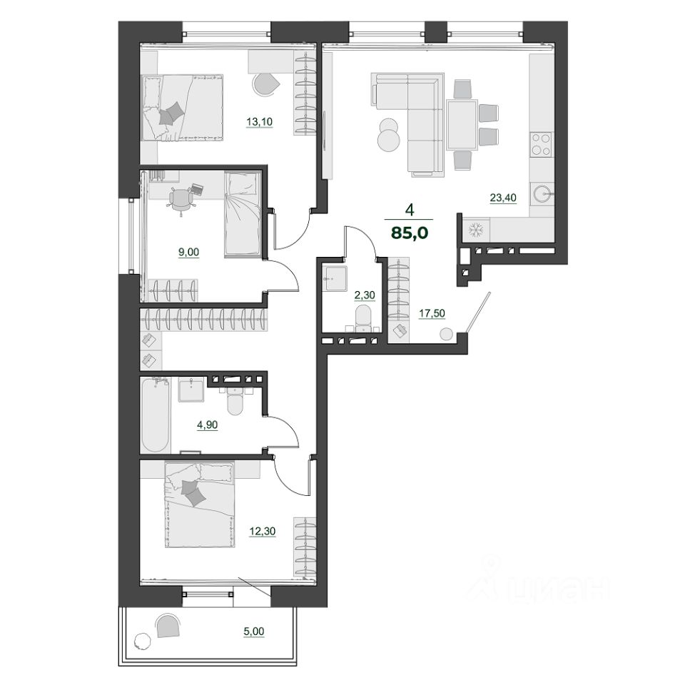Продаётся 4-комнатная квартира в строящемся доме (Дом 6), срок сдачи: IV-кв. 2027, общей площадью 85 кв.м., на 2 этаже. Новый жилой комплекс "Familia" от ГСК "Спецстрой" расположен по адресу: г. Красноярск, по ул. Светлова.