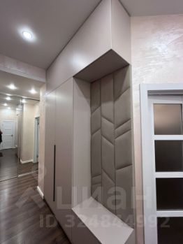 В прихожей новый встроенный шкаф с мягкой стеновой панелью.