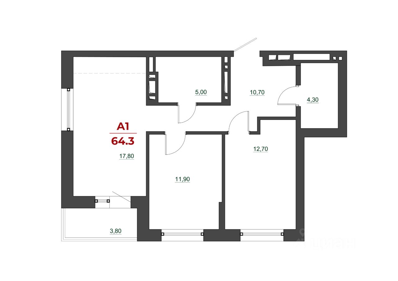 64,3 м²
