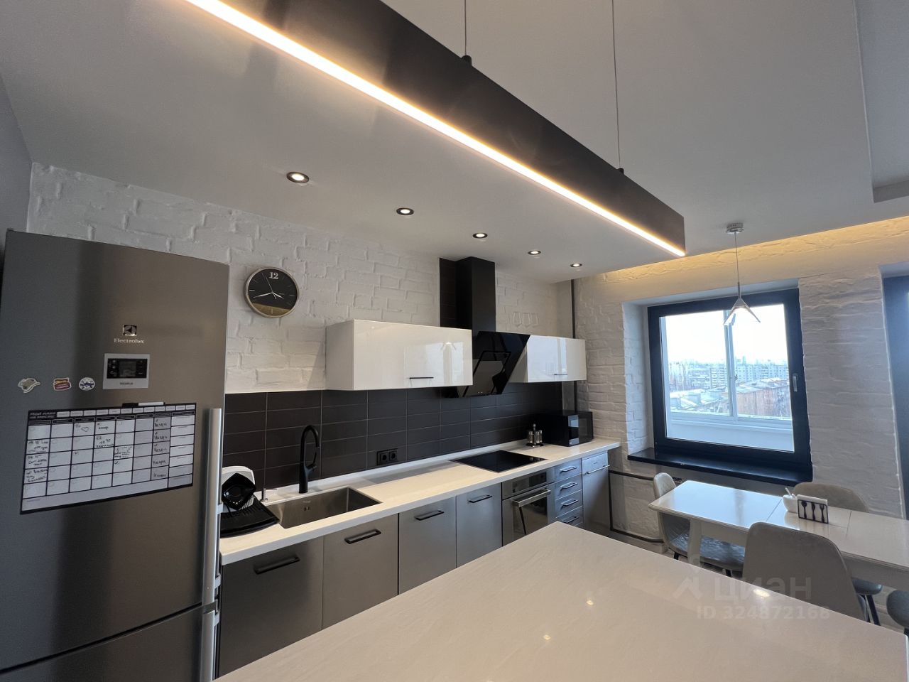 Выполнен капитальный дизайнерский ремонт в классическом и лофт стилях из качественных импортных материалов. Выровнены все стены, пол, потолок, заменена проводка, установлены счётчики, каменные подоконники из Индии, итальянская сантехника, дизайнерские радиаторы, межкомнатные двери премиум класса, высококачественные стеклопакеты, элитная встроенная кухня и барная стойка. На полу в прихожей, туалете и ванной дорогой кафель, в остальных комнатах - ламинат. В просторной гостиной точечная подсветка потолка, витражное окно на балкон. Ванная и туалет в кафеле, качественный кухонный гарнитур, фартук в кафеле, стеклянная вытяжка, посудомоечная машина. Панорамное остекление балкона, на полу ламинат высокого класса. В квартире остаётся встроенная мебель: шкафы, кухонный гарнитур с посудомоечной машиной, сантехника, качественные светильники. По договоренности можем оставить диван и двуспальную кровать с ортопедическим матрасом. Так же есть кладовка на площадке, для хранения спортивного и бытового инвентаря.