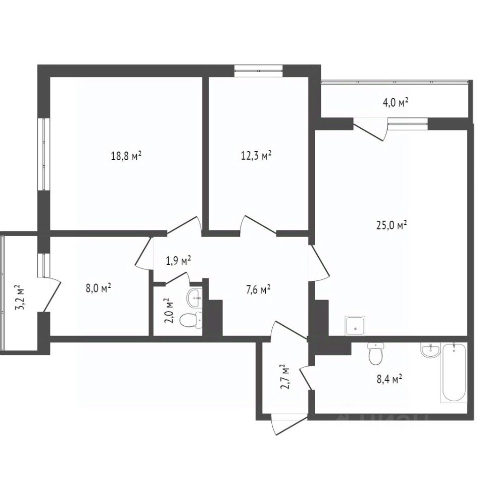 Кухня-студия, два балкона, панорамное окно.