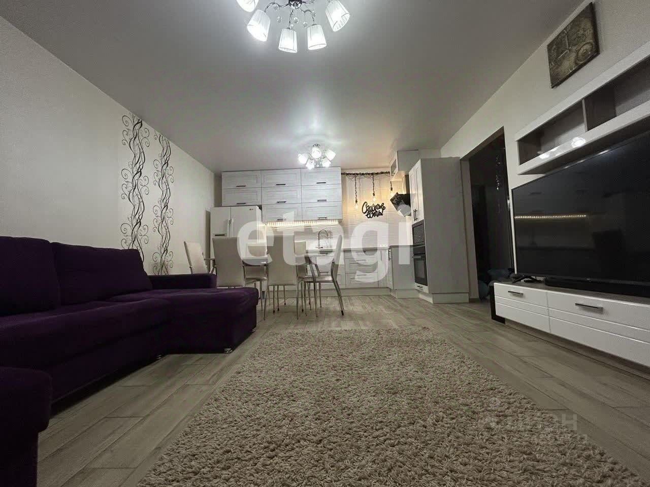 В квартире много встроенной мебели, которая остается. Гарнитур тёплых оттенков, оснащенный встроенной бытовой техникой (эл.плита, посудомоечная машина, духовой шкаф, вытяжка).