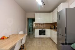 В коридоре установлен большой широкий шкаф, что обеспечивает хорошую систему хранения. Установлена большая кухня, сделана разводка электрики, а также оборудована зона гостиной. Также есть просторная спальня с выходом на балкон. Двор у дома закрытый, два шлагбаума.