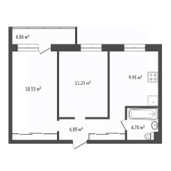 Две изолированные комнаты 11,2 м2 и 18,55 м2, большая кухня 10м2 где места хватит всем.