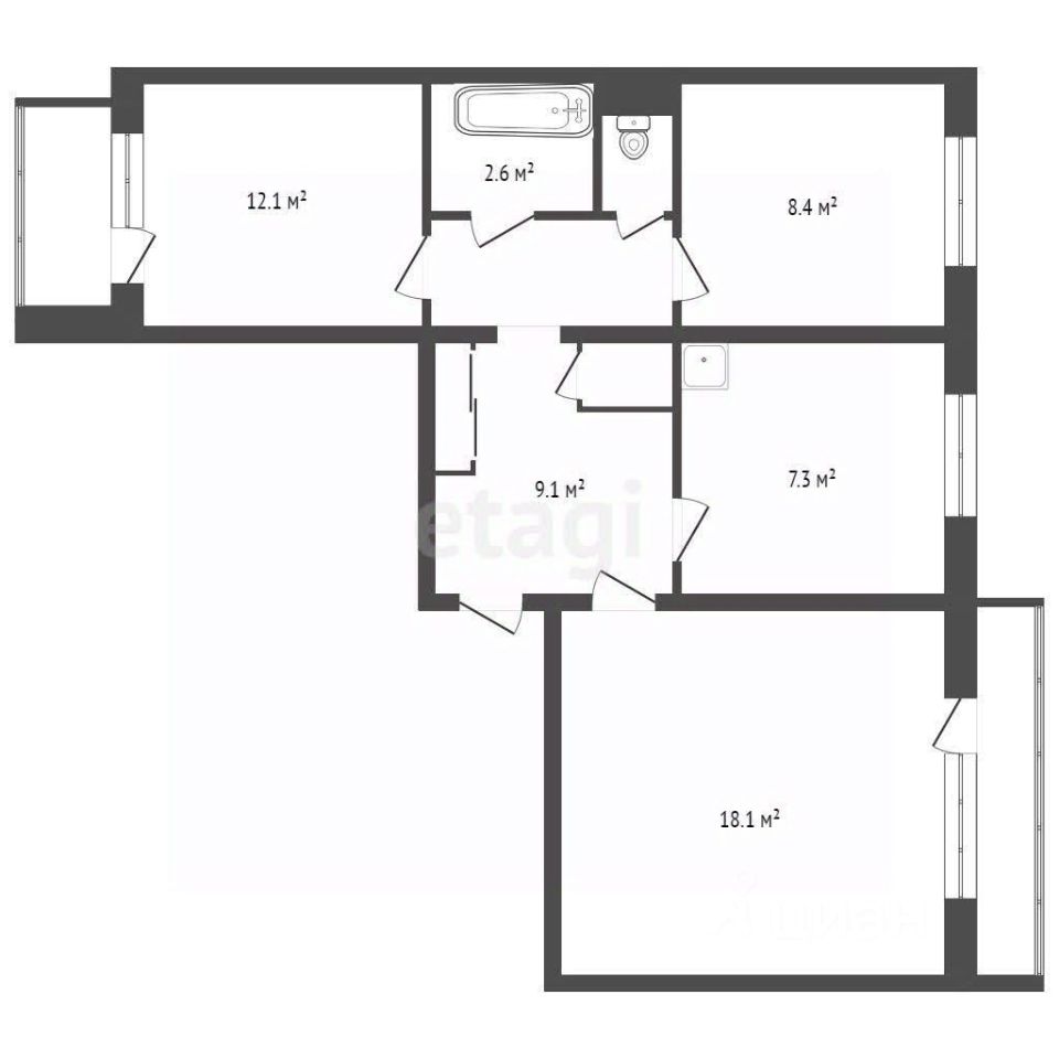 Продается 3-комнатная квартира удачной планировки на 2 стороны, 2 балкона, санузел раздельный, просторный холл.