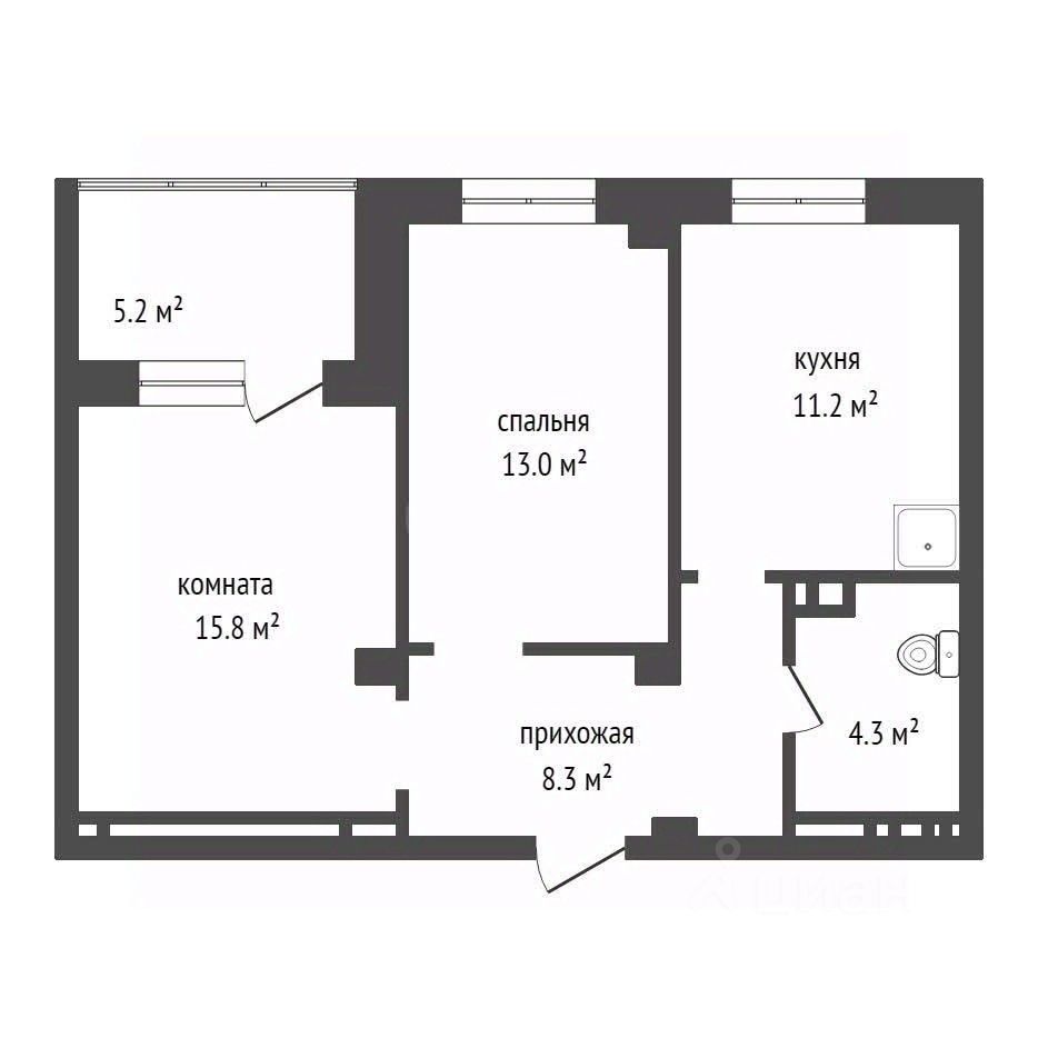 Просторная 2-комнатная квартира 55.8 м² на 21-м этаже!