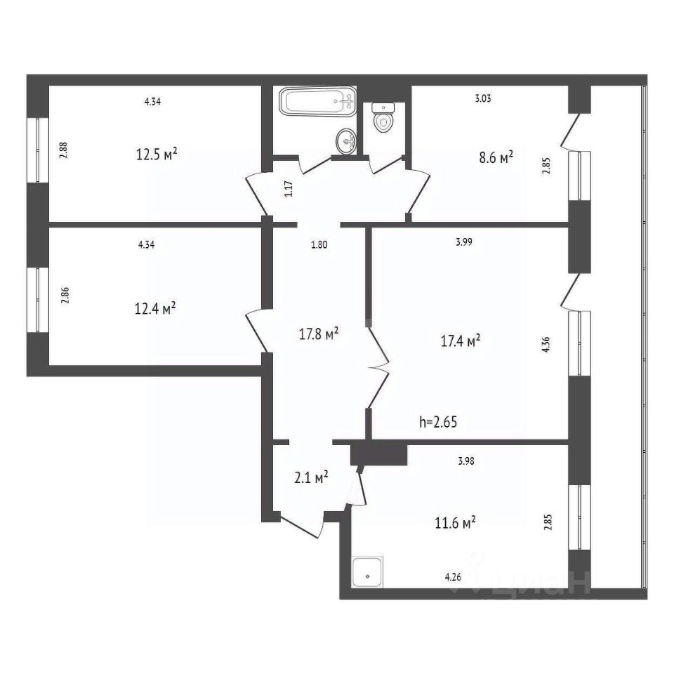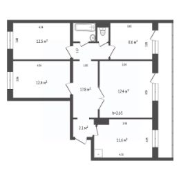 4 изолированные комнаты площадью от 12,4 до 17,8 м², удобное расположение комнат даёт гибкость в зонировании: для семьи, удалённой работы и зоны отдыха.