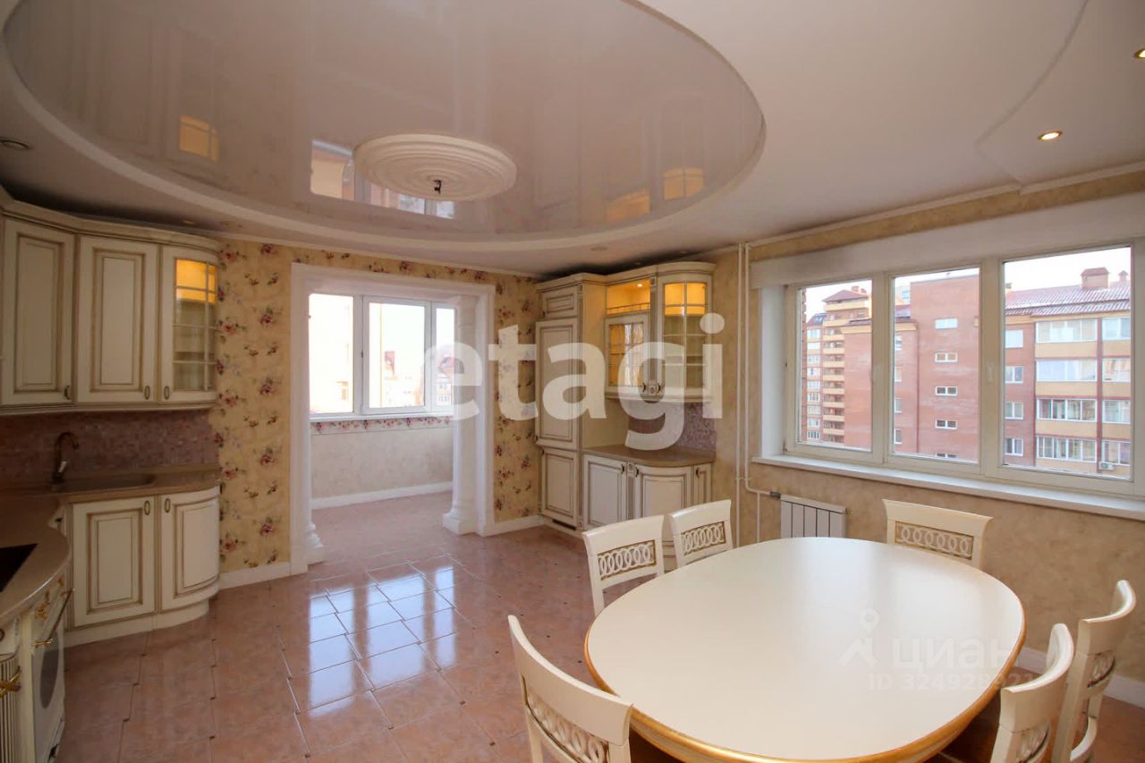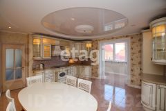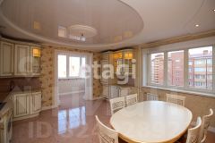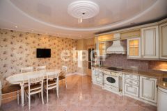 Общий метраж квартиры 117.4м2., кухня 24 м2, квадратные спальни 18/20 м2, гостиная 32м2. Улучшена планировка за счет объединения кухни с балконом (утеплен), зонирование гостиной. Полы выложены плиткой Versace и установлена система "тёплый пол". Большая кухня-столовая оснащена дорогой итальянской мебелью и встроенной бытовой техникой — холодильник, посудомоечная машина, плита, духовой шкаф. За счет объединения кухни с балконом добавилась дополнительная Лаунж зона. В квартире установлена приточно-вытяжная вентиляция с фильтрацией воздуха, сигнализация. В ванных комнатах итальянский кафель, установлена европейская сантехника, душевая кабина, ванна с гидромассажем. В просторных спальнях есть встроенные шкафы, на полу качественный ламинат. Из главной спальни выход на большой застеклённый балкон, отделанный деревом. Дизайн квартиры выдержан во всех комнатах, общая цветовая гамма в пастельных и золотых оттенках.