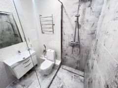 В квартире сделан качественный, капитальный ремонт в современном стиле в светлых тонах. В ванной комнате также сделан очень качественный ремонт.