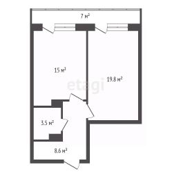 1-кoмнaтнaя кваpтира, общей площадью с балконом 53,9 кв.м, расположенная на удобном 1 этаже.