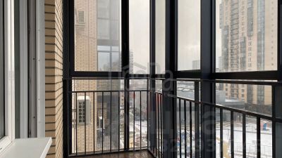 Из гостиной выход на утеплённую лоджию (здесь установлена система тёплый пол) с видом на ТЦ Авиатор (ул.Авиаторов)