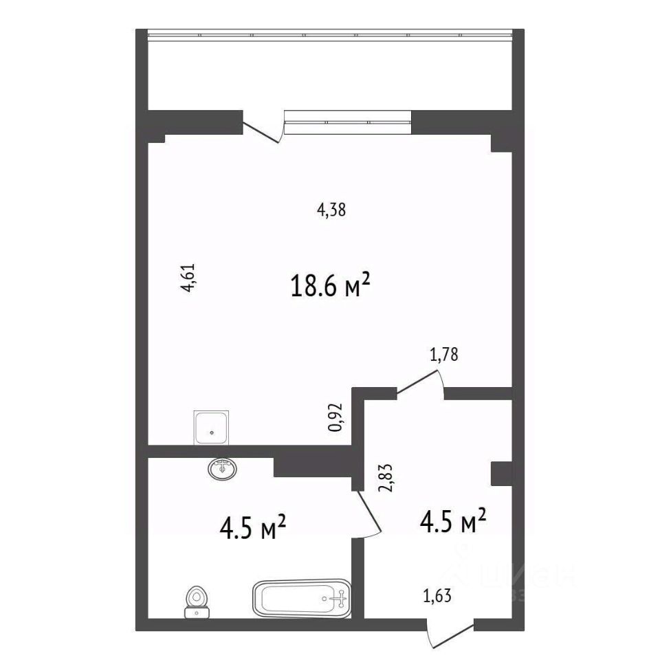 Преимущества данной студии, застекленная большая лоджия 4 кв.м, где можно устроить зону чаепития.