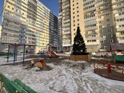 Во дворе дома хорошая современная детская площадка.