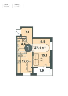 45,1 м²