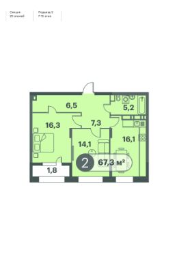 67,3 м²