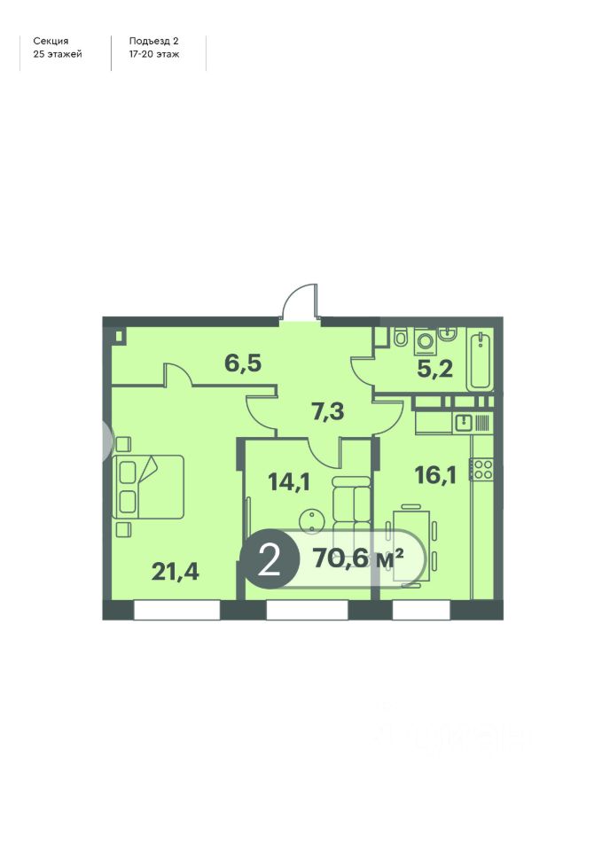 70,6 м²