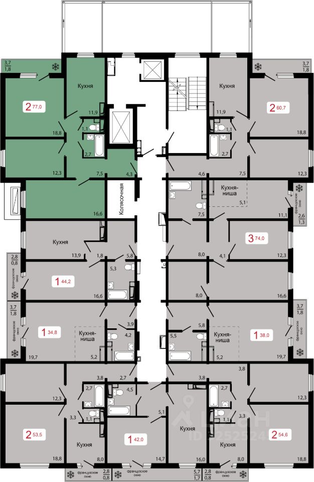 разнообразные классические и европланировки квартир: 1-комнатные площадью от 40-76 м2, 2-комнатные - 46-63 м2, 3-комнатные - 75-76 м2,