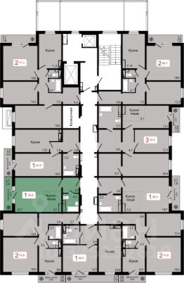 разнообразные классические и европланировки квартир: 1-комнатные площадью от 40-76 м2, 2-комнатные - 46-63 м2, 3-комнатные - 75-76 м2,