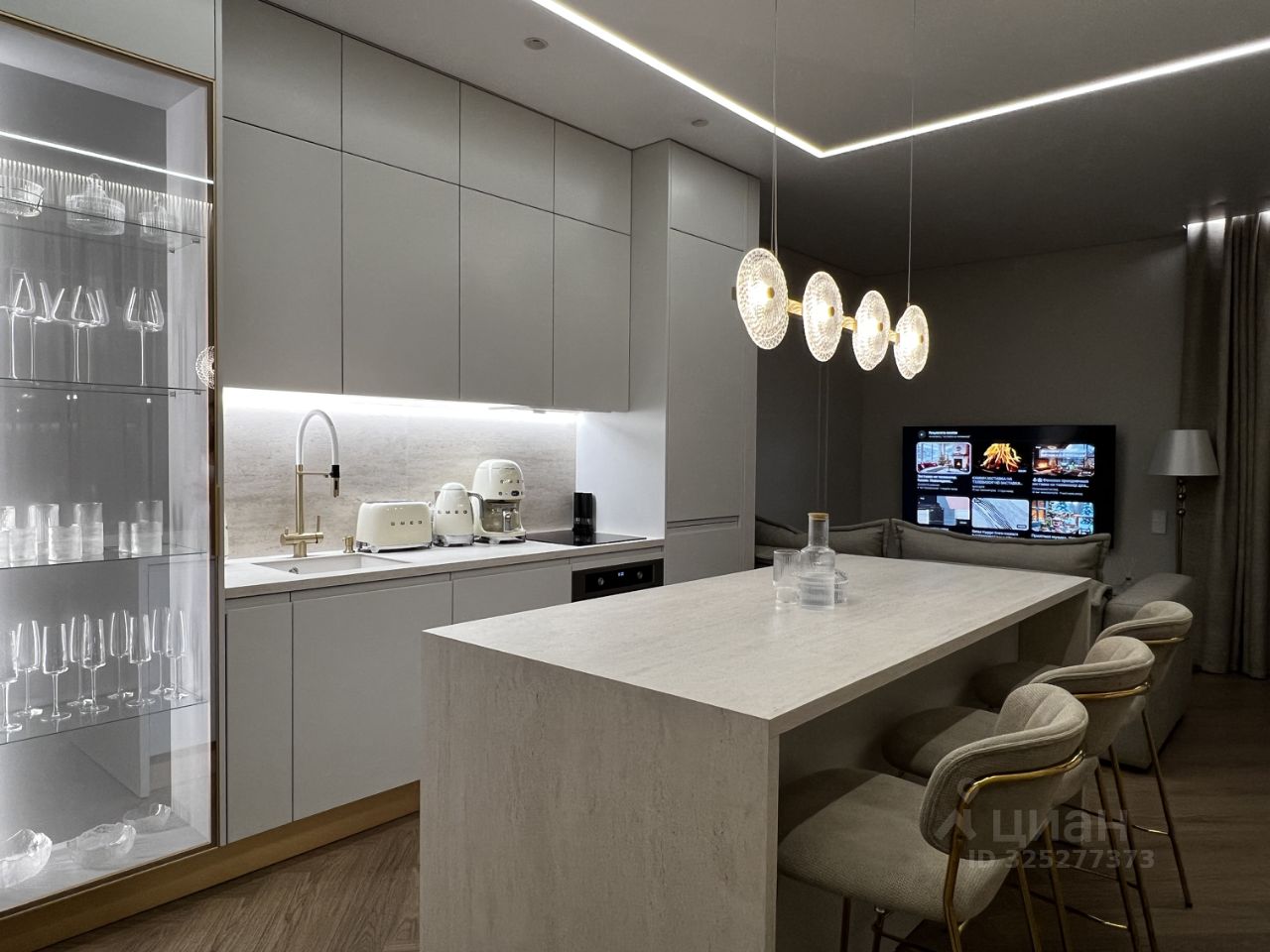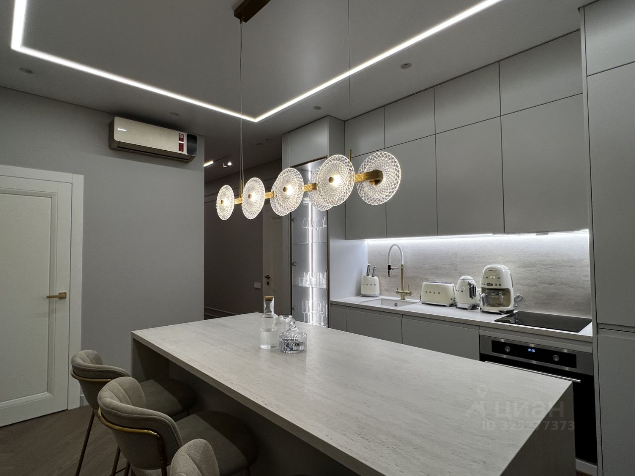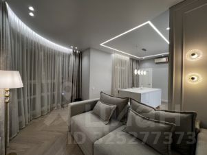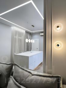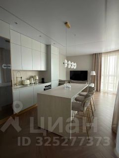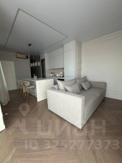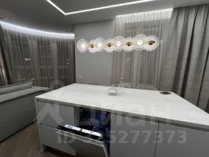 Кухня-гостиная с панорамными окнами (вид на парк 400т-летия, закаты, МВДЦ Сибирь, Взлетку), мини-гостиная с ТВ зоной и полноценным диваном. Отдельно-стоящий остров (в него встроены ПММ, СМА, системы хранения, каменная столешница). Кухонный гарнитур укомплектован всей необходимой техникой. Есть кондиционер.