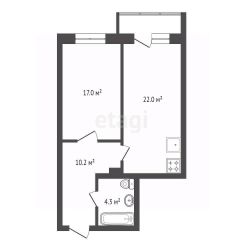 Кухня-гостиная 22 кв.м, спальня 17 кв.м.