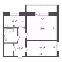 Привлекательная геометрика - отдельные комнаты, небольшая уютная кухня, совмещенный санузел. Несомненным плюсом является гардеробная , что минимизирует место для шкафов.