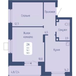 Общая площадь58,5 м²