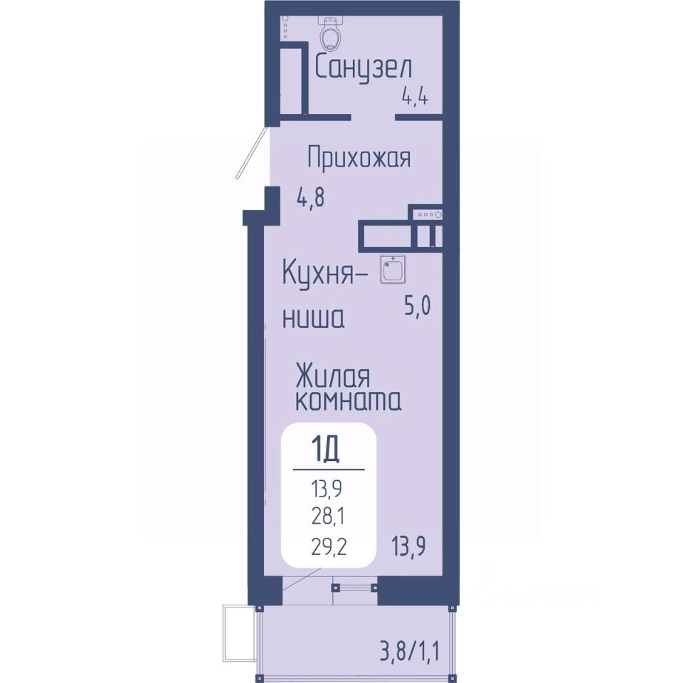 Общая площадь29,2 м²