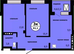 Продаётся 3-комнатная квартира в сданном доме (Лесников, 53 (Панорама, Корпус 2)), срок сдачи: IV-кв. 2024, общей площадью 60.2 кв.м., на 9 этаже. Дом сдан. Семейная ипотека НЕ ПОДХОДИТ!