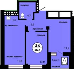 Общая площадь55,9 м²