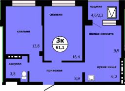 Продается 3-комн. квартира, 60,2 м²