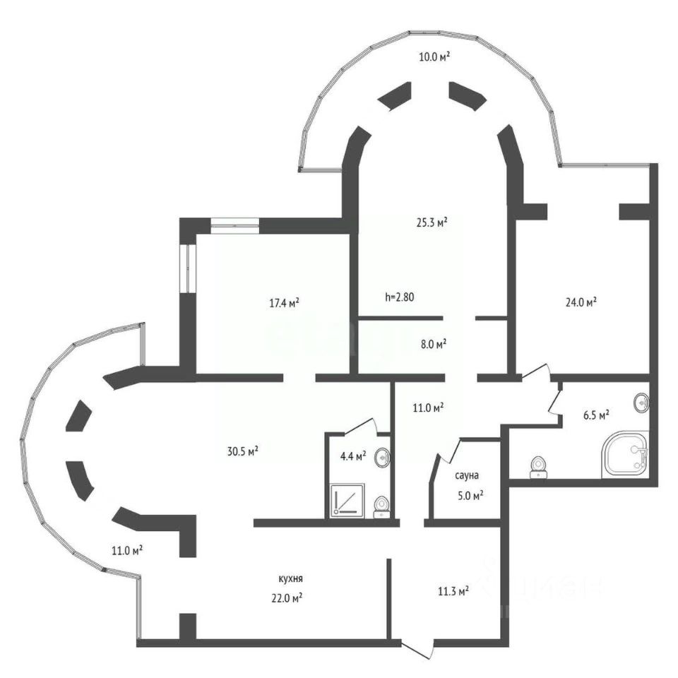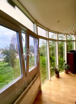 Сама квартира имеет особенную планировку - две округлые большие залы соединены с утепленной лоджией и располагаются окнами на юг и восток, поэтому квартира хорошо освещена.