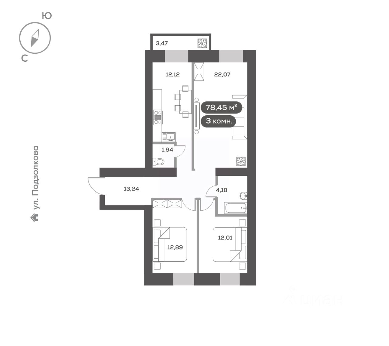 Общая площадь77,5 м²