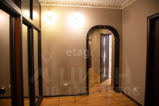 Трехкомнатная квартира с ремонтом в классическом стиле. Комнаты раздельные. Есть большая гардеробная, кладовая, встроенные шкафы, сушилка. Ровные стены оклеены обоями, высокие двухуровневые потолки, на полу паркет. Входные и межкомнатные двери нового образца. Два балкона, выходят на разные стороны дома.
