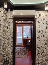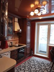 (зал- 22кв.м., спальни 12.2.+ 14.6 кв.м., вместительная кухня с выходом на застекленный балкон 10.6 кв.м.,установлен кондиционер.), качественные двери во всех комнатах, со вкусом подобраны обои, в жилых комнатах и коридоре на полу- ламинат, в кухне- плитка.